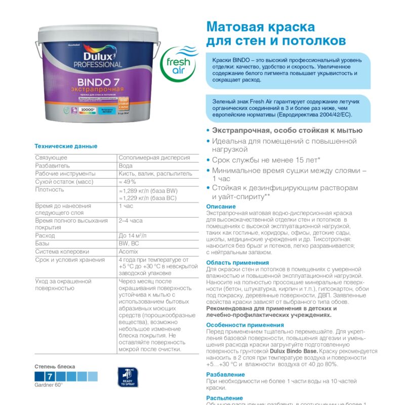 Dulux Bindo 7 Латексная краска для стен и потолков