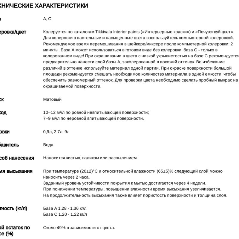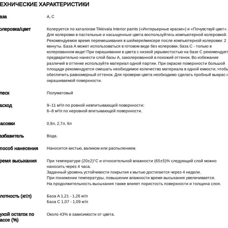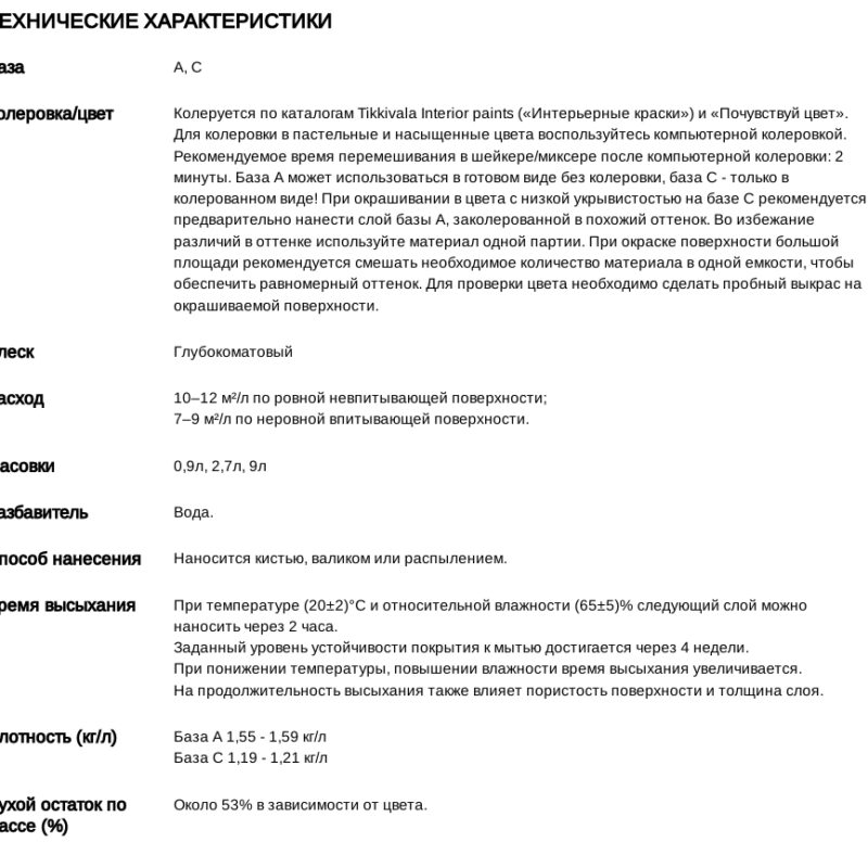 Tikkivala Euro Extra 20 Водоразбавляемая краска для стен и потолков в помещениях с умеренной и повышенной влажностью