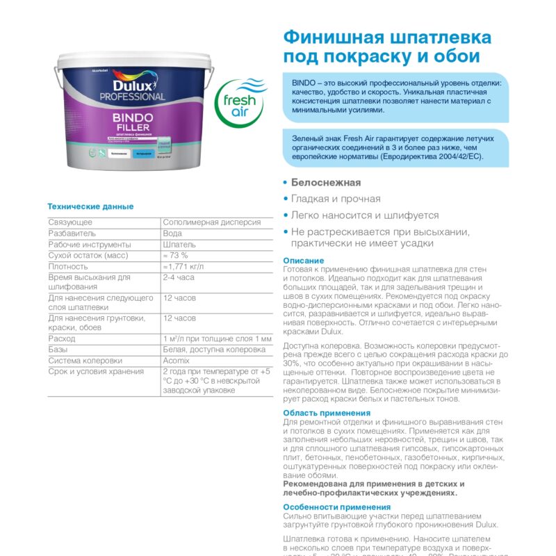 Dulux Bindo Filler Финишная шпатлевка под покраску и обои