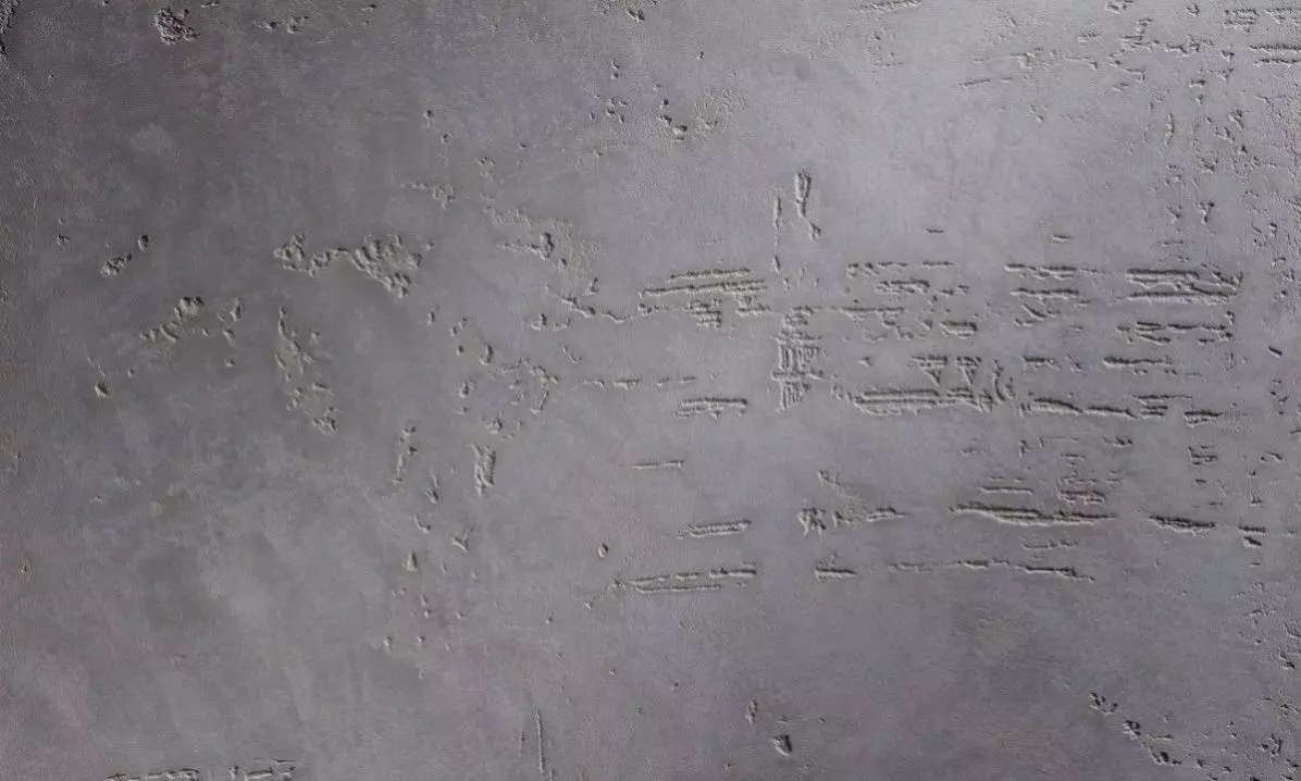 Эффект «карта мира»: первый слой нанесите кельмой тонким равномерным слоем по поверхности. Не давая слою высохнуть, мелкопористым валиком, слегка нажимая на него, поднимите небольшую «шубку», убирая, таким образом, неровности с первого слоя. После полного высыхания первого слоя нанесите второй слой локально островками, напоминающие материки на карте мира. После создания нужного рисунка поверхность материала с усилием загладить кельмой, уплотняя его структуру.