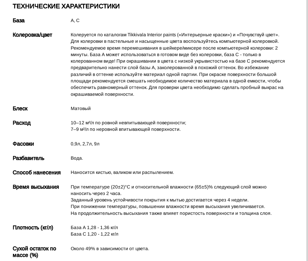 Предназначена для окраски стен и потолков в помещениях с нормальной и повышенной влажностью по бетонным, кирпичным, оштукатуренным, зашпатлеванным поверхностям, гипсокартону, древесностружечным и древесноволокнистым плитам. Может использоваться в детских учреждениях и помещениях административной группы лечебно-профилактических учреждений.