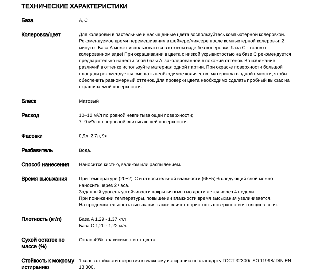 Водоразбавляемая краска для обоев и стен. Применяется для окраски обоев и стен. Предназначена для окраски всех типов обоев, готовых и под окраску (структурных, флизелиновых, виниловых, текстурированных и стеклообоев). А также применяется для окраски бетонных, оштукатуренных, кирпичных, деревянных поверхностей и гипсокартона внутри помещений с нормальной и повышенной влажностью, в том числе с высокой эксплуатационной нагрузкой (холлов, коридоров и т.д.). Может использоваться в детских учреждениях и помещениях административной группы лечебно-профилактических учреждений.